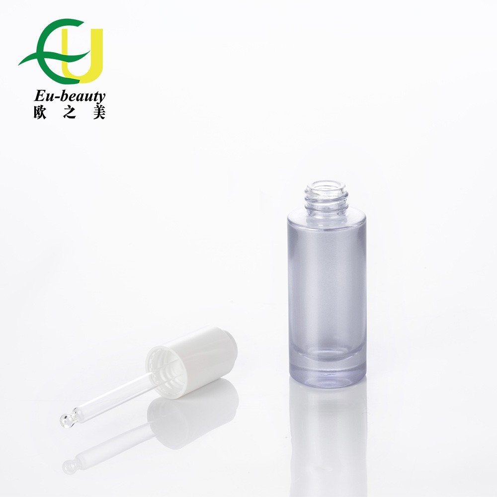EU-C6382 free samples New Design Free Sample light grey Cosmetic Skin Care Essential Oil 20ml Empty Glass Dropper Bottles