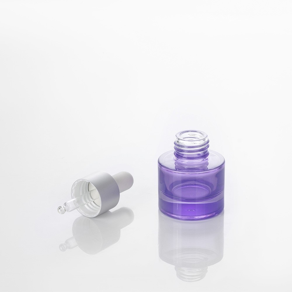 EU-C6400 purple Glass Vial Bottles 20ml With white/silver Dropper Cap For Cosmetic Oil Skincare Oil Packaging